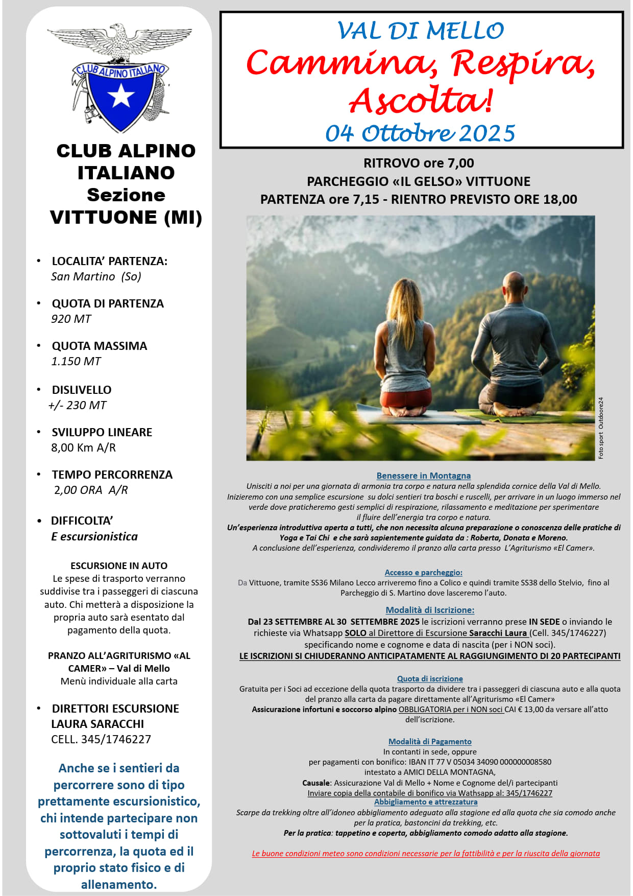 Sabato 04 Ottobre 2025 VAL DI MELLO Cammina, Respira, Ascolta!