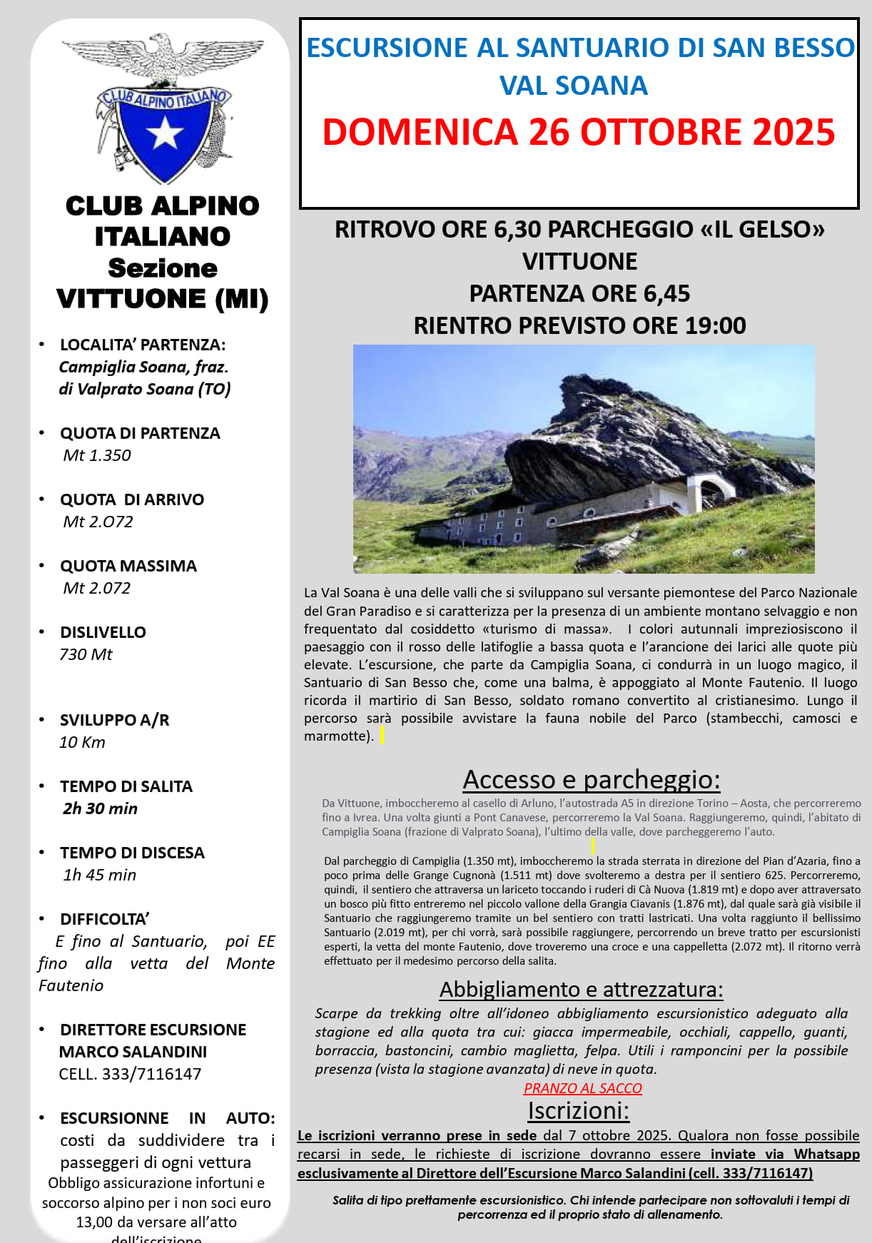 DOMENICA 26 OTTOBRE SANTUARIO DI SAN BESSO VAL SOANA