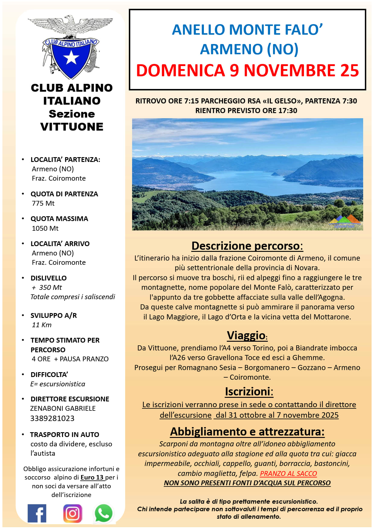 DOMENICA 9 NOVEMBRE 25 ANELLO MONTE FALO’ ARMENO (NO)